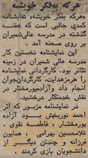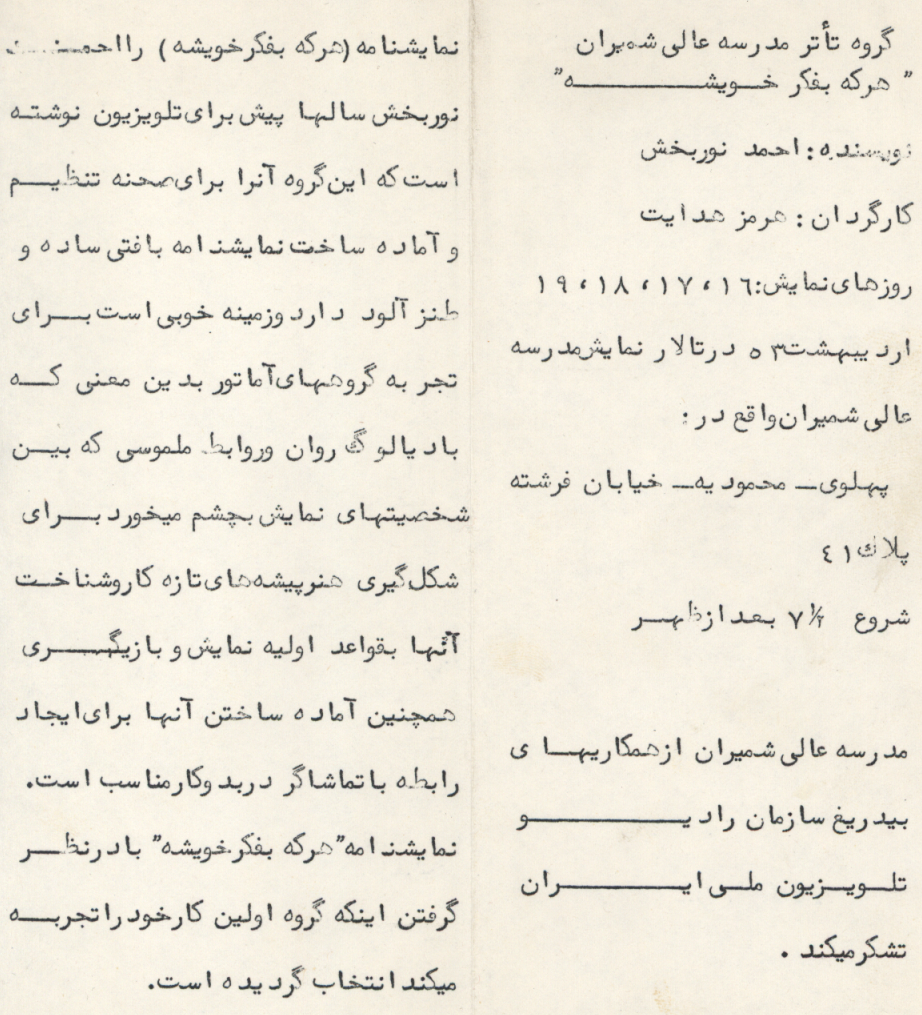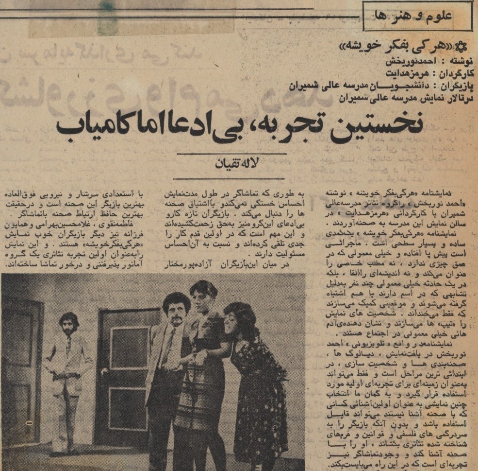 آندانشکده، بادانشجویان کارگاهِنمایش برگزار میکرد. و سرانجامش بهاجرا